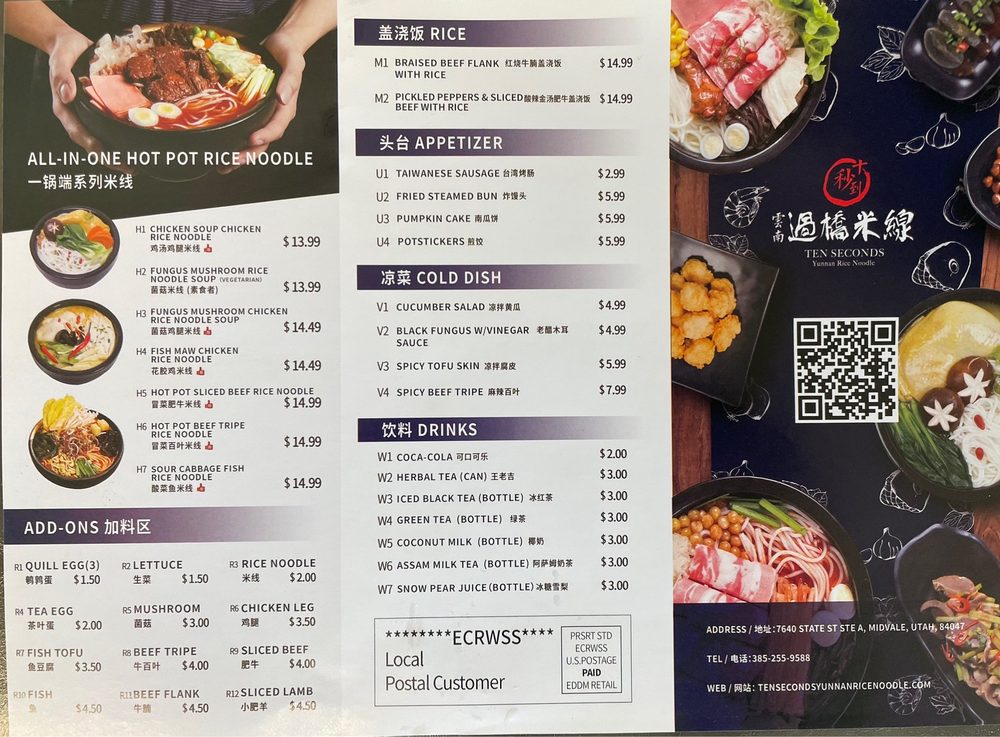 With fast service and delicious flavors, this spot has quickly become a local favorite. Whether you're looking for a quick takeout meal or a casual dining experience, Ten Seconds Yunnan Rice Noodle promises a delightful experience that nourishes both the body and soul.